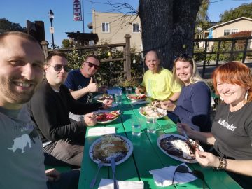One a year, we go on a teambuilding trip together.