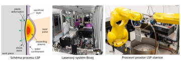 Na HiLASE se momentálně nacházejí 3 různé laserové systémy, které lze využít pro proces LSP. Jedná se state of the art experimentální diodově čerpaný laserový systém Bivoj, který je schopen generace až 100J pulsů s průměrným výkonem 1 kW. Zbylé 2 systémy jsou výbojkami čerpané, z nichž jeden je komerční systém Litron s max. energií 3 J a poslední je polokomerční systém Innolas s energií 4J a modifikovaným laserovým seedem.